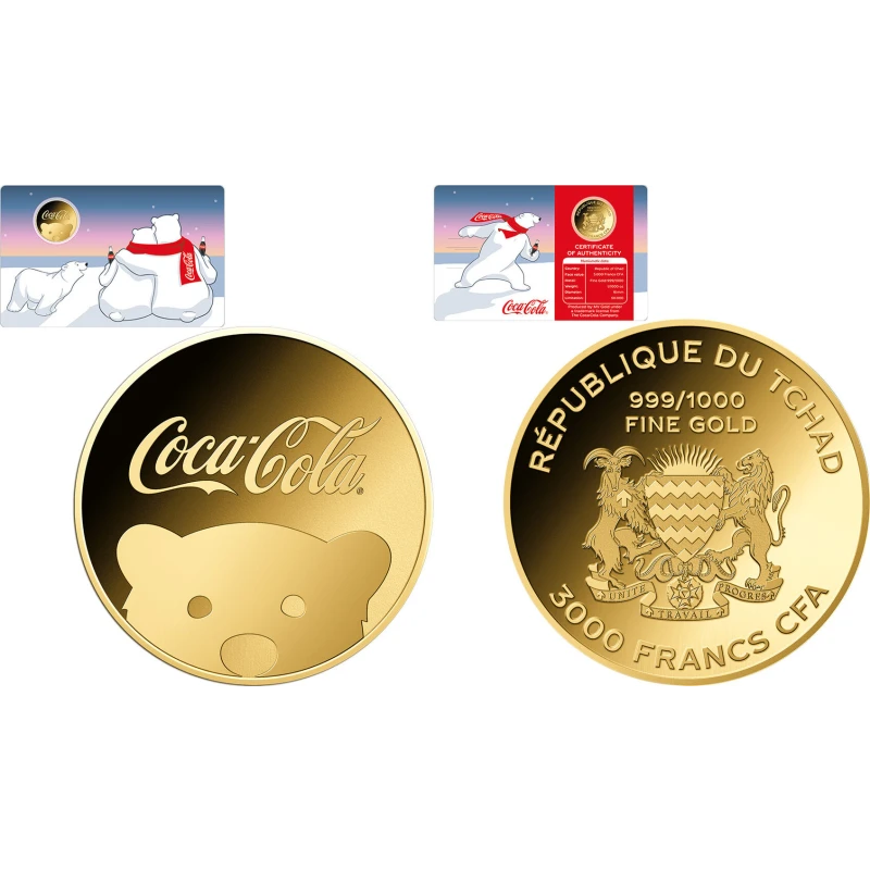 Chada gold coin "Coca-Cola. Polar bear" (proof), 0.031 g. pure gold (0.999 proof)