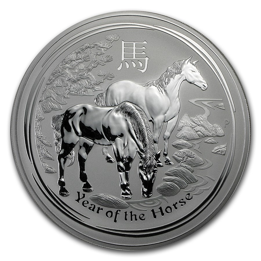 Dynamiek van prijsverandering Australië zilveren munt Lunar II Jaar van het Paard 2014 1000 g