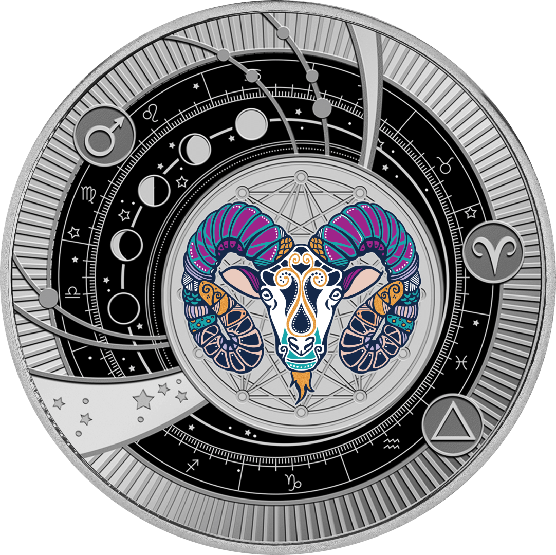 Deze prachtige zilveren munt maakt deel uit van de serie "Zodiac Signs" en is opgedragen aan de Ram, de stoutmoedige pionier wiens energie en vastberadenheid inspireren tot actie. De Ram wordt geregeerd door de vurige Mars en symboliseert kracht, passie en een innerlijk vuur dat geen grenzen kent. De munt is geslagen in gepolijste plaat, met heldere kleuren en ingewikkelde details. Een elegante hangerring maakt het mogelijk om de munt als sieraad te dragen, zodat je het symbool van de krachtige energie van de Ram dicht bij je houdt. De munt wordt geleverd in een etui met een echtheidscertificaat en is gelimiteerd tot slechts 599 stuks wereldwijd.