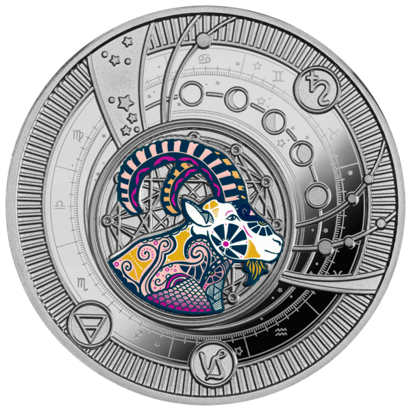 Deze prachtige zilveren munt uit de serie "Zodiac Signs" is opgedragen aan Steenbok, een aardeteken dat standvastigheid, verantwoordelijkheid en innerlijke kracht symboliseert. Op de achterkant is de Steenbok versierd met delicate ornamenten en patronen tegen een achtergrond van de sterrenhemel en dierenriemsymbolen. De munt is geslagen in gepolijste plaat met indrukwekkende details en heldere kleuren. Een elegante hangerring maakt het mogelijk de munt als sieraad te dragen, waardoor de individualiteit van de eigenaar wordt benadrukt. De munt wordt geleverd in een etui met een echtheidscertificaat en is gelimiteerd tot slechts 599 stuks wereldwijd.