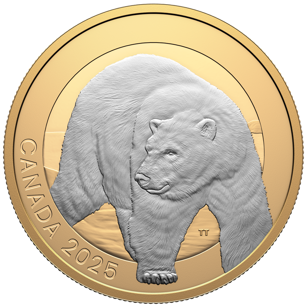 Dynamiek van prijsverandering Canada: zilveren munt IJsbeer 2025 Gepolijste plaat verguld 1 ounce