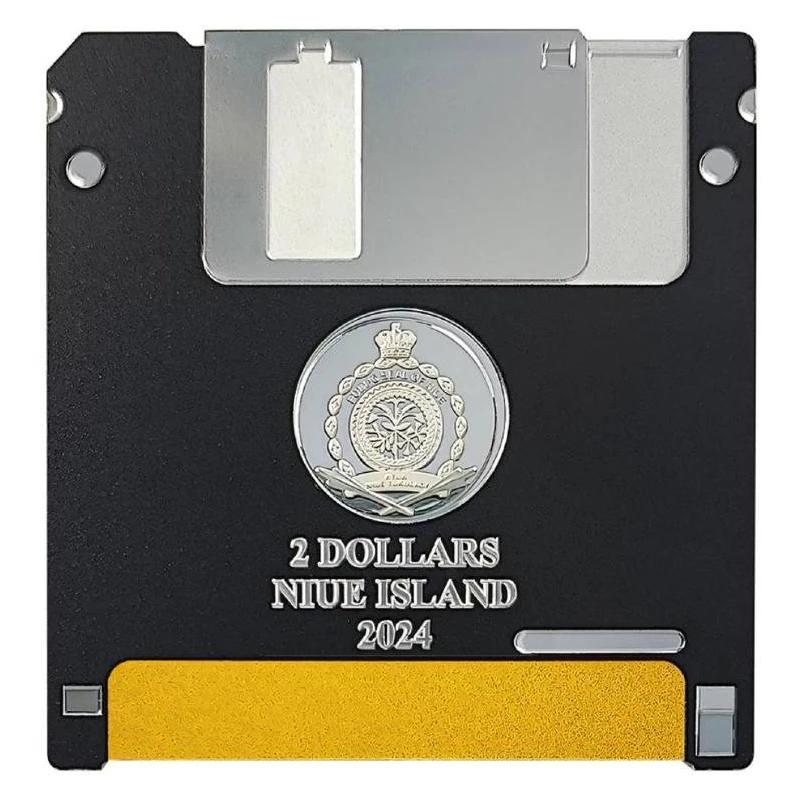 Zilveren munt Niue "Diskette" (ingekleurd) 2024, 62,2 g puur zilver (0,999 proof).