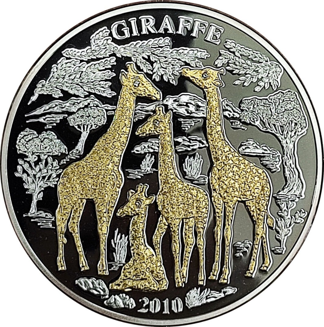 Zilveren munt Rwanda "Giraffe" 2010g., 93,3 g puur zilver (0,999 proof)