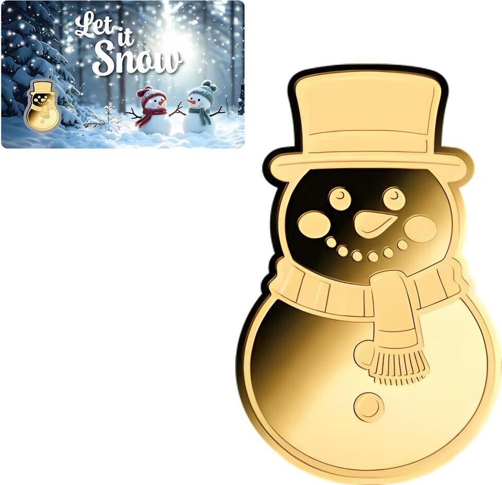 Chad: gouden verzamelmunt Let it Snow. Sneeuwpop 0,031 g puur goud (0,999)
