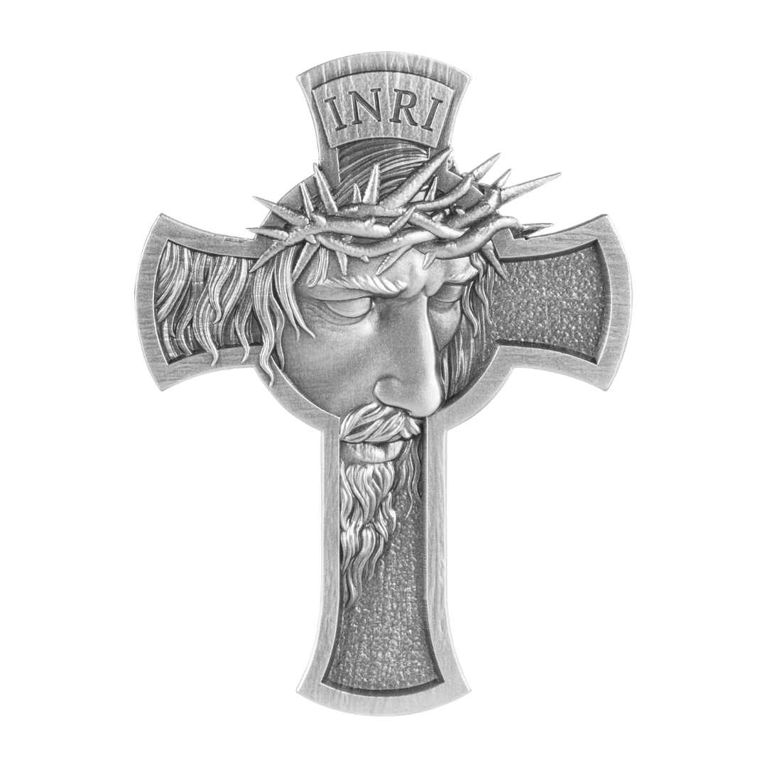 Deze unieke zilveren munt van één ounce heeft de vorm van een kruis en herdenkt het centrale symbool van het christelijk geloof, de kruisiging van Jezus Christus. De achterkant toont het gezicht van de Heiland in een doornenkroon met verbluffend detail en weerspiegelt zijn lijden, medeleven en spirituele kracht. De munt heeft een antieke afwerking en een individueel serienummer dat de exclusiviteit benadrukt. Uitgegeven in een gelimiteerde oplage van slechts 500 stuks wereldwijd. Wordt geleverd in een thematisch etui met een certificaat van echtheid.