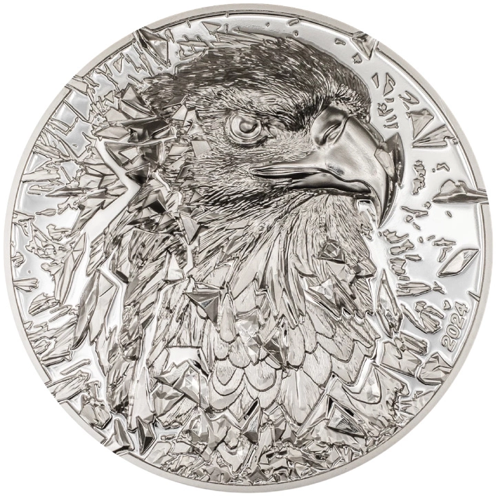 Deze indrukwekkende zilveren munt van 3 ounce maakt deel uit van de "Silver Burst" serie en is opgedragen aan de zeearend. De achterkant is voorzien van een opvallende afbeelding van de kop van de adelaar die door een gebroken glaspatroon breekt, wat het gevoel van kracht, beweging en het ontembare karakter van de vogel versterkt. De munt is geslagen in gepolijste plaat met Smartminting-technologie en heeft een ultrahoog reliëf dat de gedetailleerde textuur van de veren en de doordringende blik van het roofdier benadrukt. De munt wordt geleverd in een elegant etui met een echtheidscertificaat. De gelimiteerde oplage is 999 stuks.