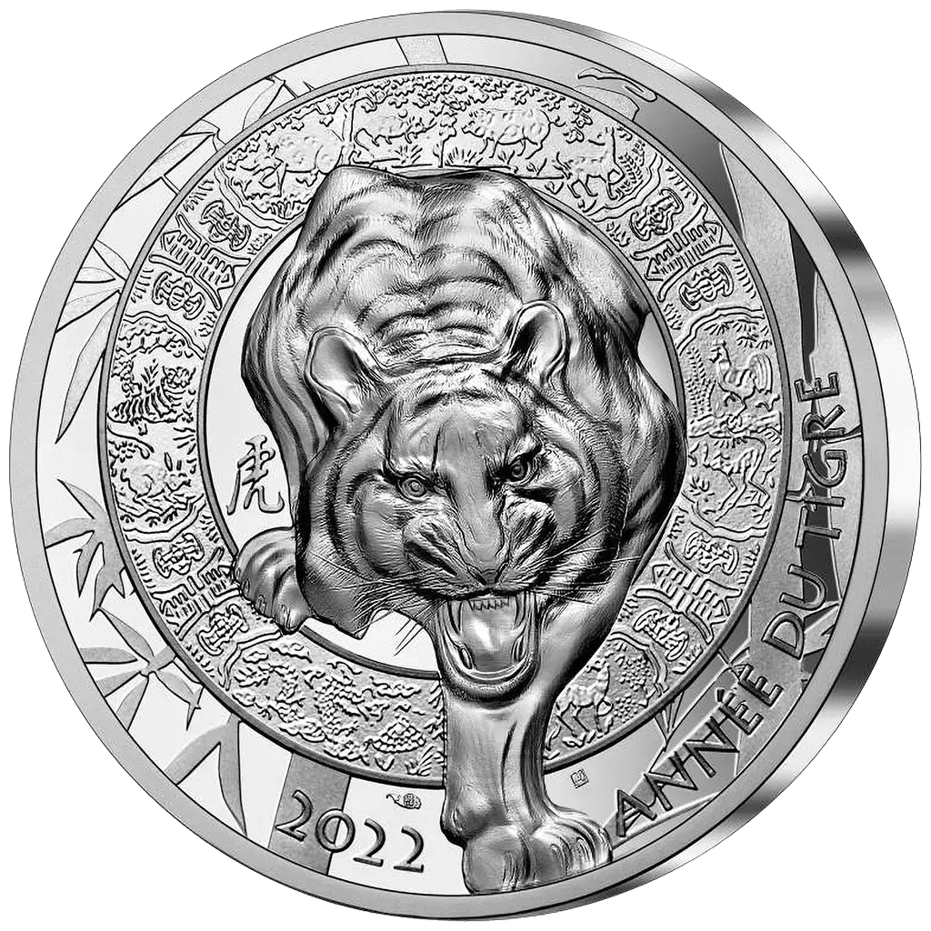 Frankrijk zilveren munt Jaar van de Tijger 2022 Gepolijste plaat 1 ounce