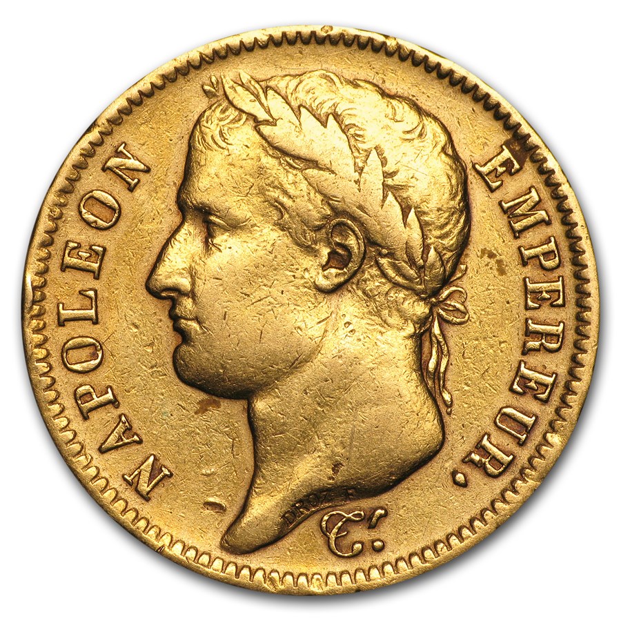 Frankrijk: gouden verzamelmunt Napoleon Bonaparte (met krans) 40 frank 1807-1813, 11,61 gram puur goud (0,900)