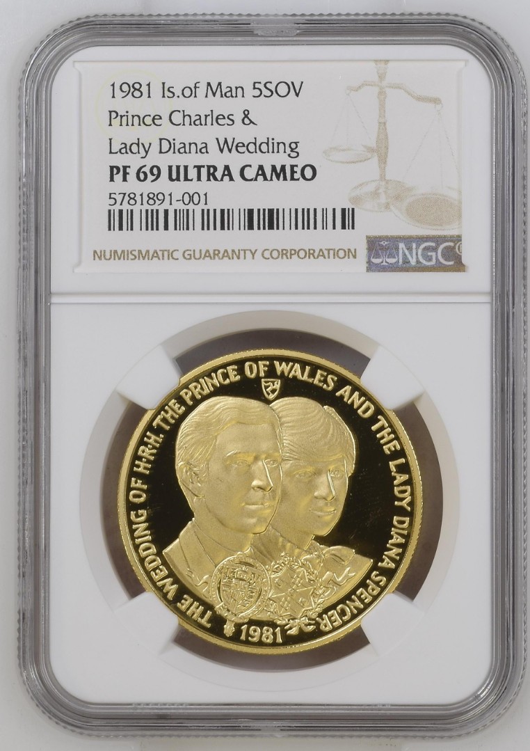 Dynamiek van prijsverandering Eiland Man: gouden munt Huwelijk van prins Charles en Diana Spencer, 1981 RANG 36,61 g