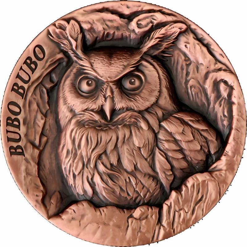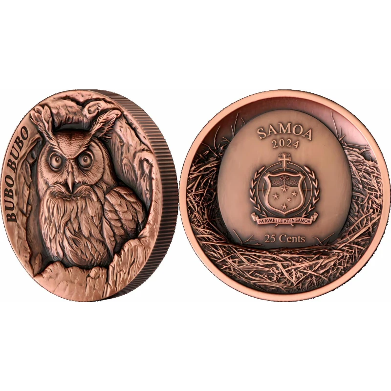 Koperen munt Samoa "Holle boom. Uil", (hoogreliëf) 2024, 47,0 g zuiver koper