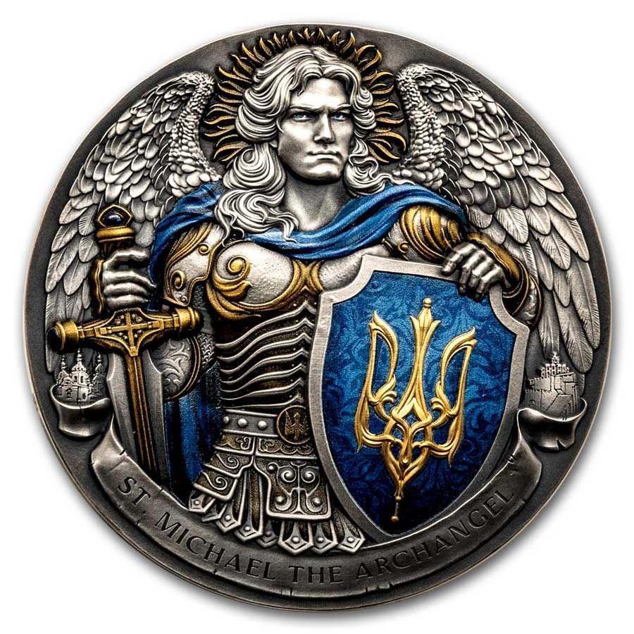 Deze belangrijke zilveren munt van 5 ounce is opgedragen aan Sint-Michaël de Aartsengel, een tijdloos symbool van hoop, kracht en bescherming. De munt heeft een antieke afwerking en een hoog reliëf, is gedeeltelijk in kleur gedrukt en heeft een genummerde rand, wat het verzamelbare karakter onderstreept. De afbeelding van aartsengel Michaël, weergegeven in de kleuren van de Oekraïense vlag, brengt een krachtige boodschap over van spirituele voogdij en goddelijke steun in moeilijke tijden. De munt wordt gepresenteerd in een etui en gaat vergezeld van een echtheidscertificaat. De oplage is wereldwijd beperkt tot slechts 500 stuks.