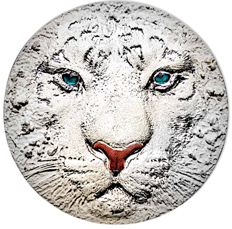 Deze indrukwekkende zilveren munt van 3 ounce markeert de lancering van de White Hunters serie en is opgedragen aan de witte tijger. De munt heeft een opvallend hoog reliëf, een antieke afwerking en een innovatief ijs/sneeuw-effect dat de illusie van ijskristallen op het oppervlak creëert. De achterkant toont een witte tijger met expressieve blauwe ogen en een roze neus, die de schoonheid en kracht van dit zeldzame roofdier weergeeft. De munt wordt gepresenteerd in een elegant etui en gaat vergezeld van een echtheidscertificaat. De oplage is wereldwijd beperkt tot 369 stuks.