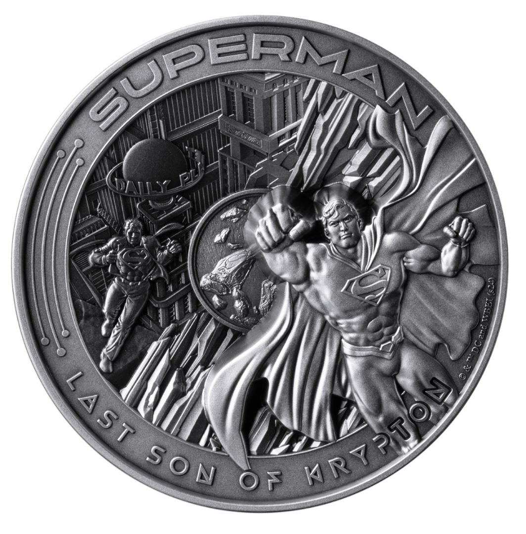 Deze indrukwekkende munt is een eerbetoon aan Superman, de eerste en meest iconische superheld uit het DC universum. De munt heeft een antieke afwerking en geavanceerde meerlaagse munttechnieken die de diepte en visuele impact van het ontwerp vergroten. De achterkant toont Superman die over de skyline van Metropolis zweeft met het legendarische Daily Planet-gebouw op de achtergrond, naast thematische elementen die verwijzen naar kryptoniet. De voorzijde toont het wapen van Samoa samen met de inscripties "SAMOA," "10 ounce Ag .999," "2025," en de denominatie "10 DOLLARS."Uitgegeven als wettig betaalmiddel met een strikt beperkte oplage van slechts 250 stuks, heeft elke munt een uniek serienummer en wordt gepresenteerd in een thematische vitrine met een Certificaat van Echtheid, waardoor het een opvallend verzamelobject is voor zowel numismaten als DC-fans.