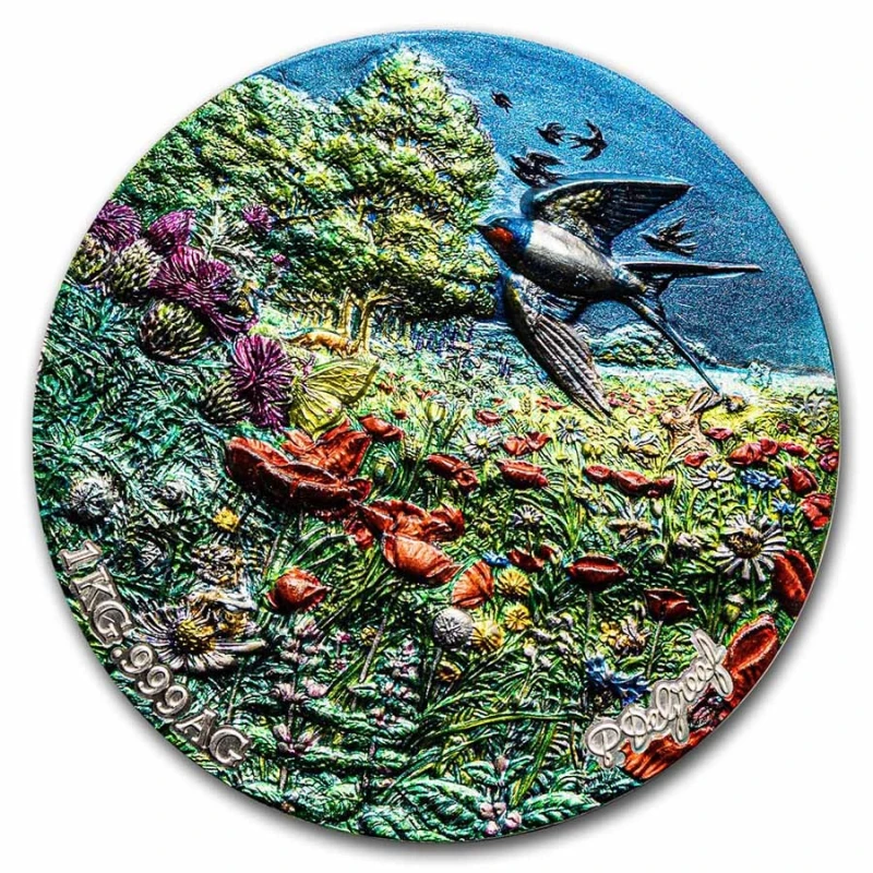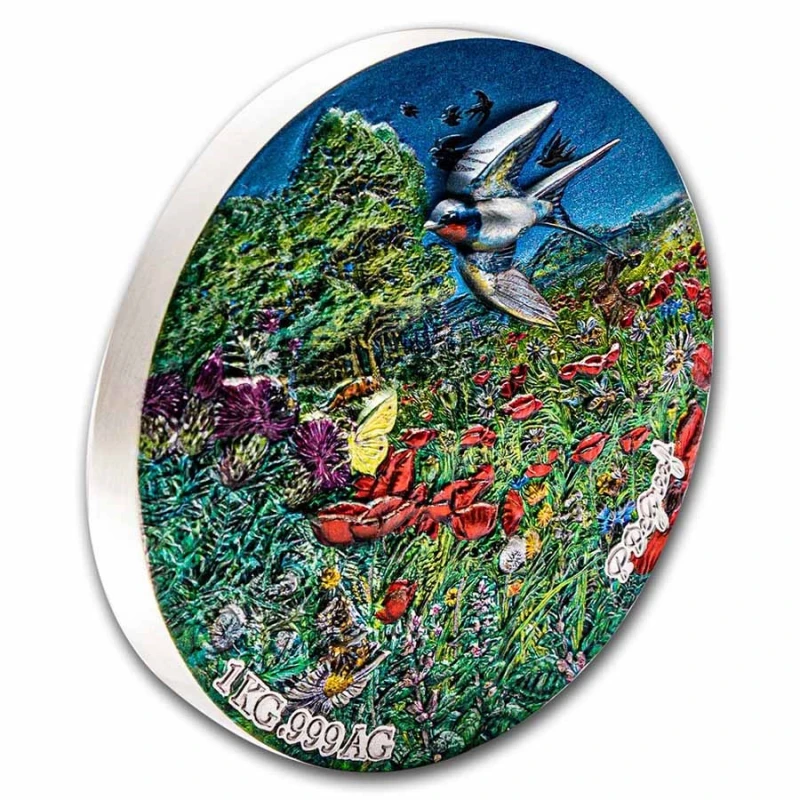 Benin zilveren munt "Natuur in gevaar. Bloemenweide" 2023, 1000 g. puur zilver (0,999 proof)