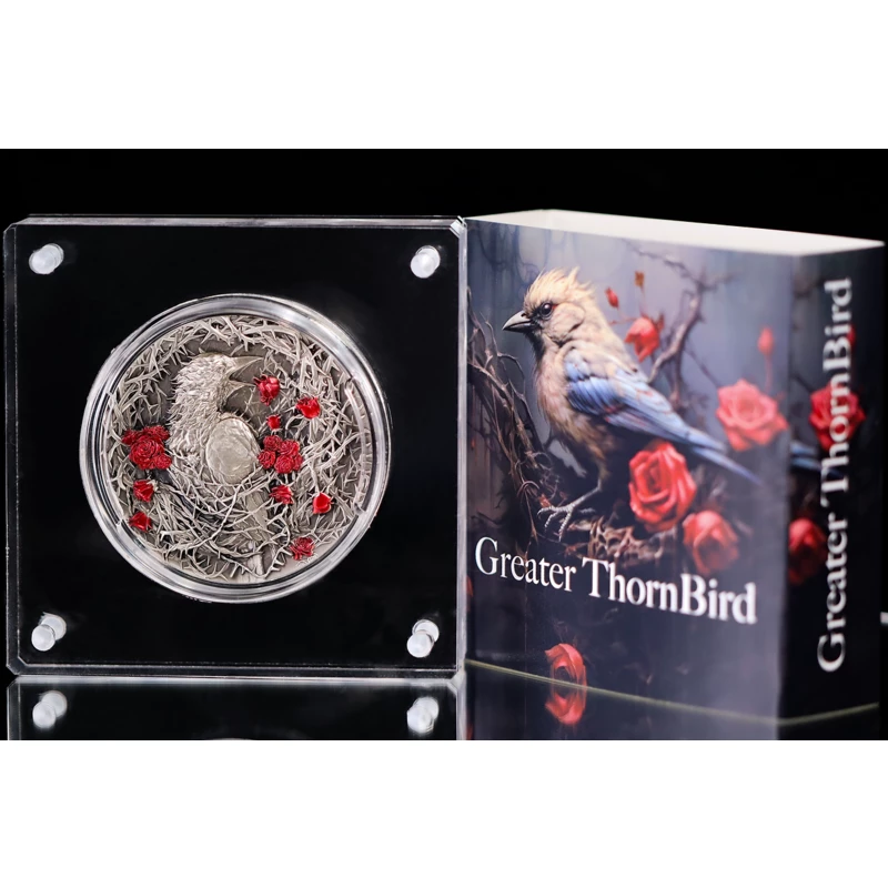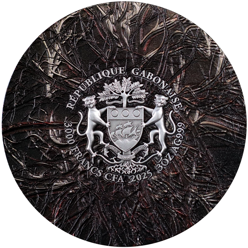 Zilveren munt Gabon "Big Bird of Thorns" (proof, hoog reliëf) 2025, 93,3g. puur zilver (0,999 proof)