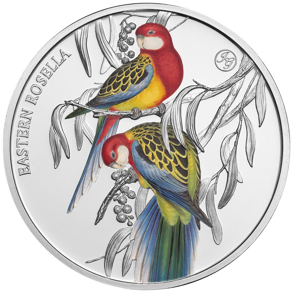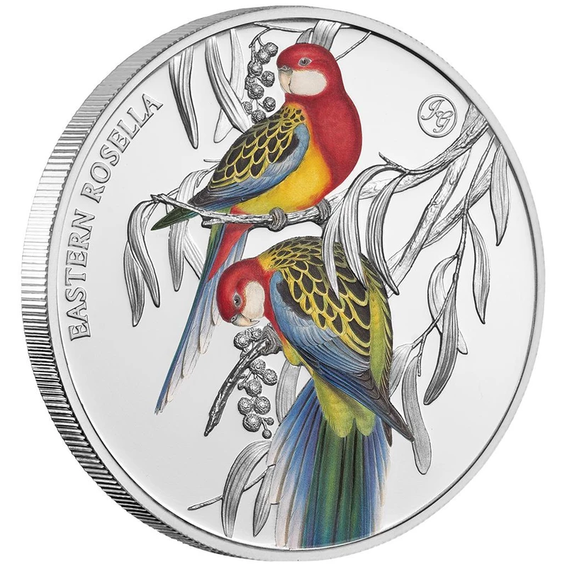 Zilveren munt Niue "East Rosella" (proof) 2023g. puur zilver 31,1g. (gehalte 0,999).