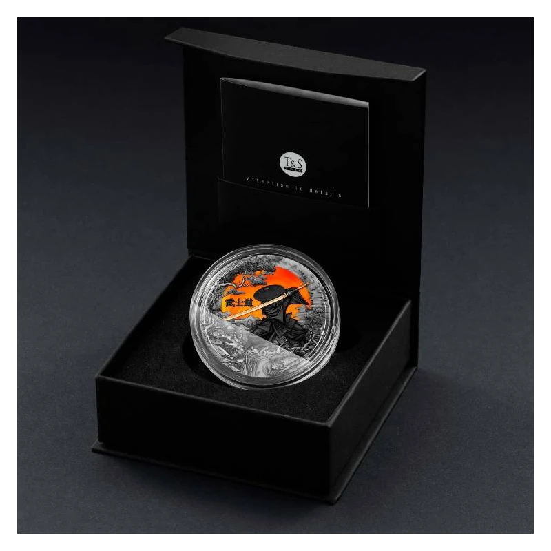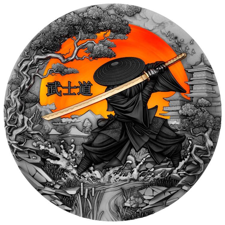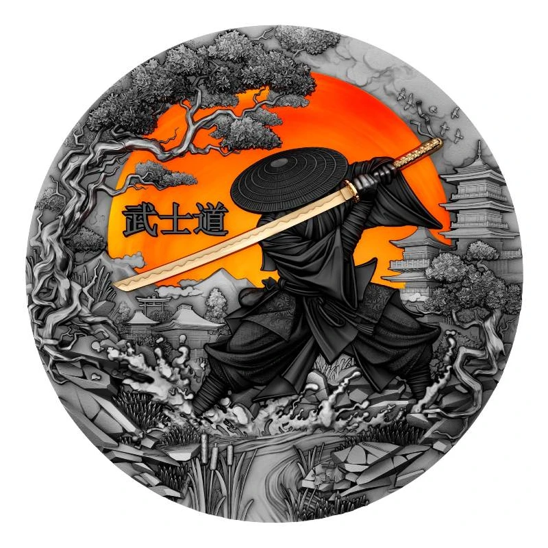 Deze prachtige zilveren munt van 2 oz. herdenkt de eeuwenoude Japanse erecode Bushido, die samoerai eeuwenlang inspireerde. De achterkant toont een dappere samoerai met een katana tegen de achtergrond van een helder opkomende zon - het symbool van Japan. De antiek afgewerkte munt combineert ingewikkeld hoogreliëf en selectieve vergulding om het indrukwekkende ontwerp te accentueren. De munt wordt geleverd in een thematisch etui met een echtheidscertificaat. De oplage is wereldwijd beperkt tot slechts 500 stuks.