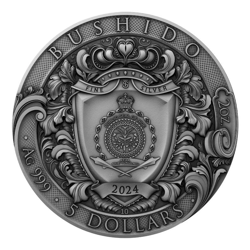 Niue: zilveren verzamelmunt Bushido 2024, 62,2 g puur zilver (0,999)