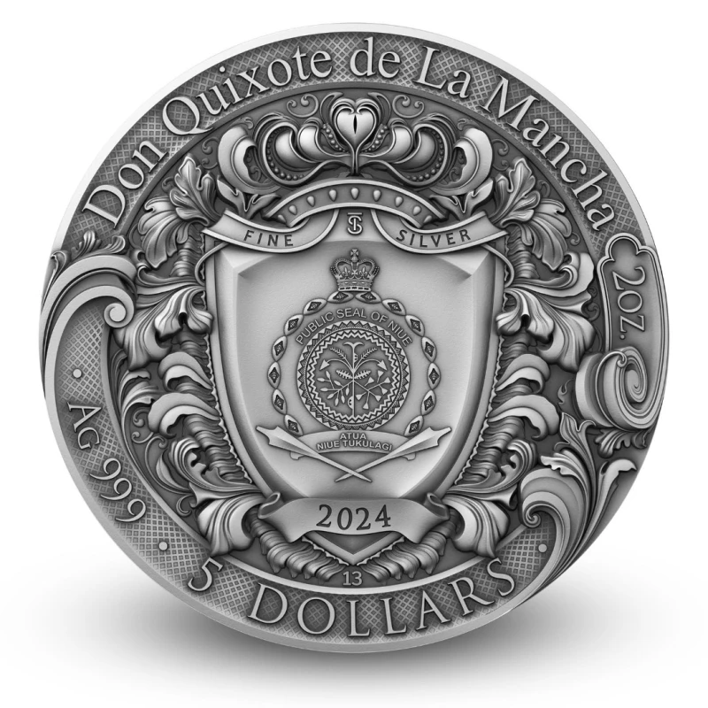 Niue: zilveren verzamelmunt Don Quichot de La Mancha 2024, 62,2 g puur zilver (0,999)