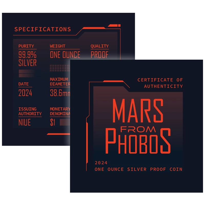 Zilveren munt Niue "Mars from Phobos" (proof, ingekleurd) 2024, 31,1 g puur zilver (0,999 proof).