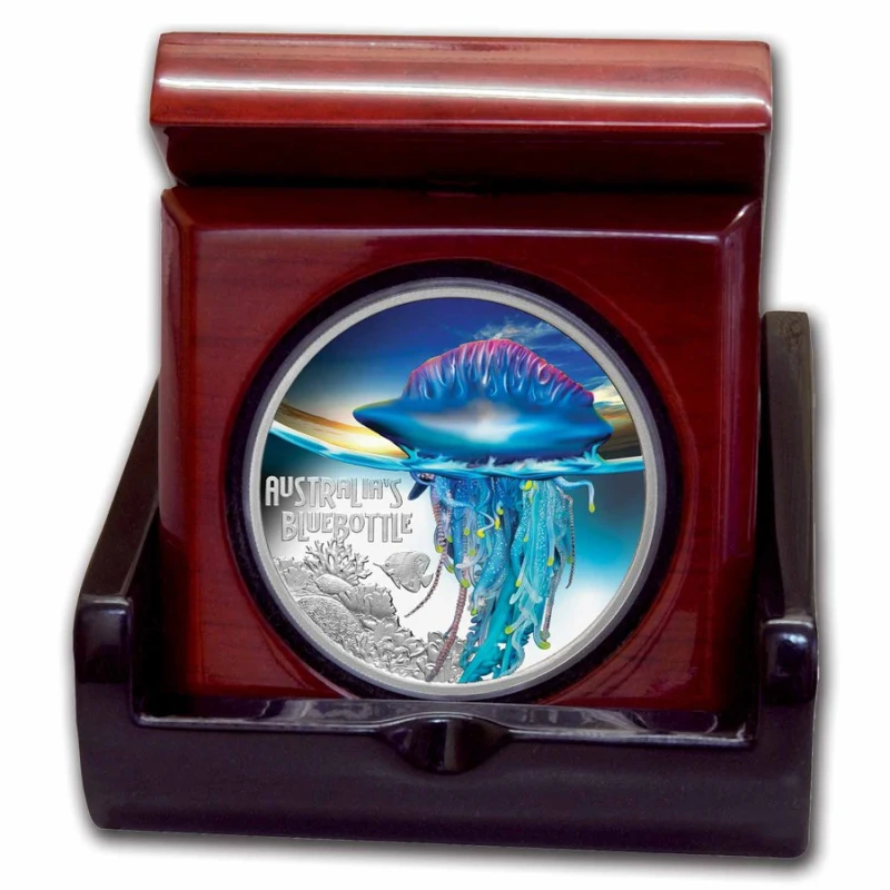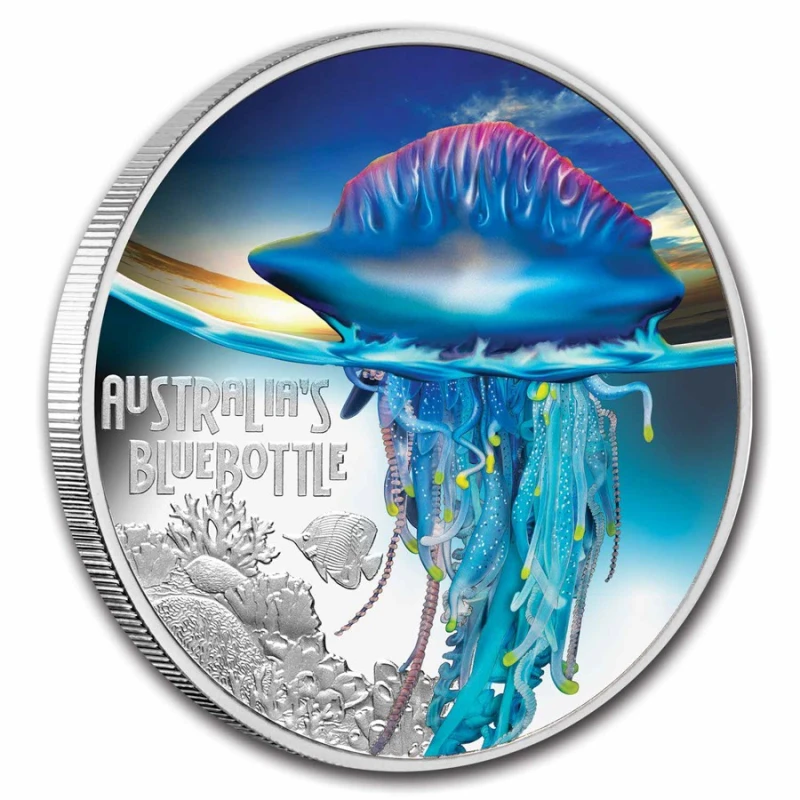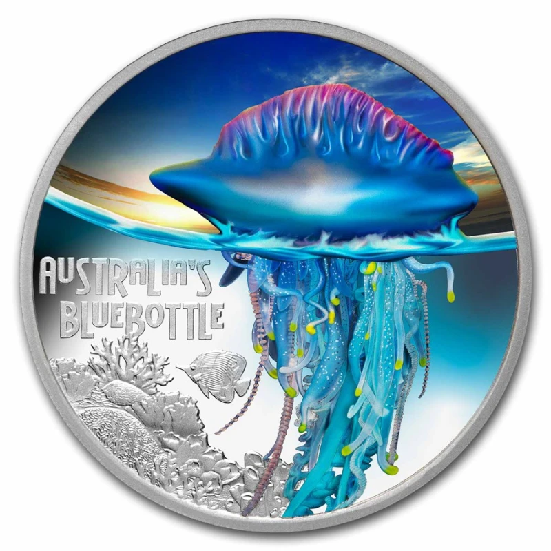 Zilveren munt Niue "Jellyfish - Blue Bottle" (proof, ingekleurd) 2024, 31,1 g puur zilver (0,9999 proof).