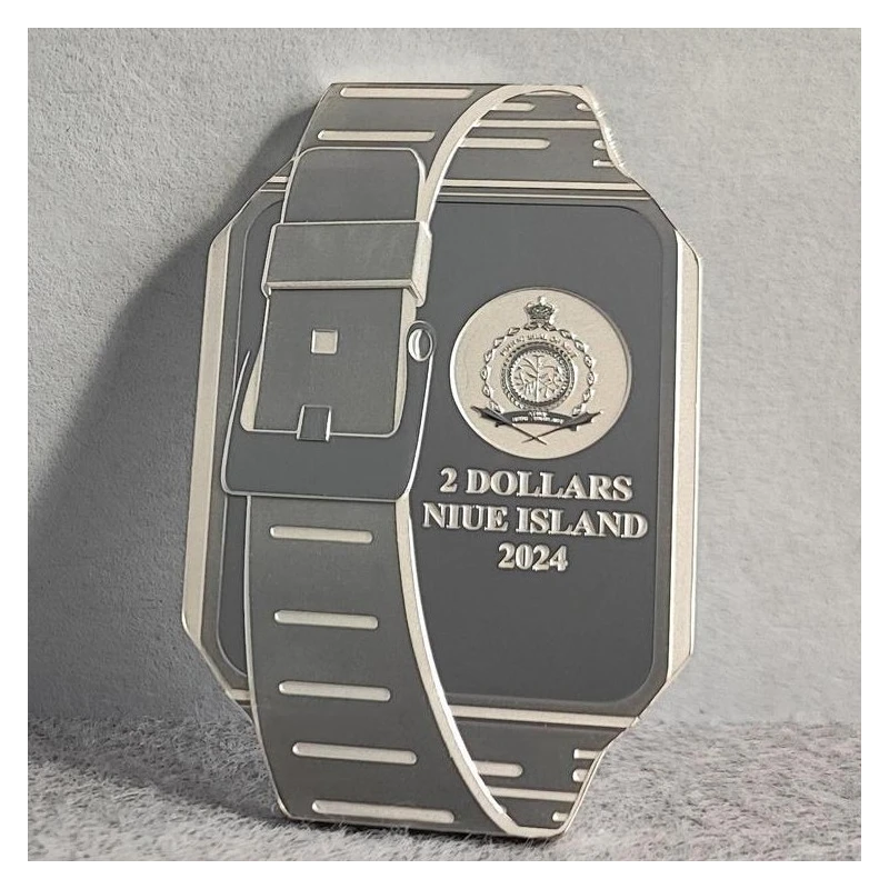 Dynamiek van prijsverandering Niue zilveren munt "Technostalgia. DATABANK horloge" 2024 (proof), puur zilver 62,2 g. (0,999 proof)