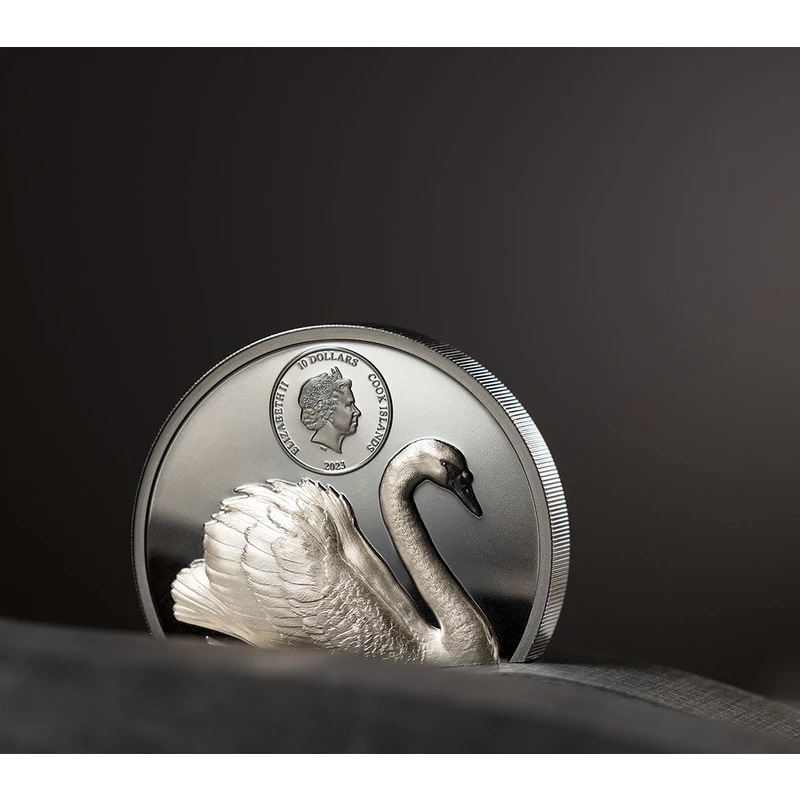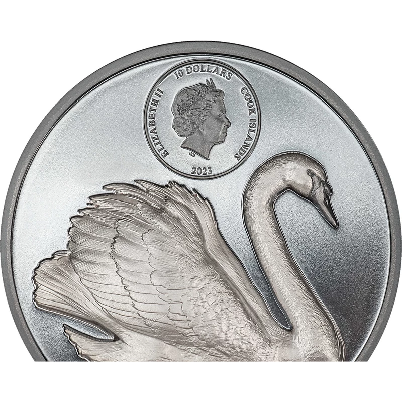 Cookeilanden Zwarte Zwaan zilveren munt, 2023, 62,2g, puur zilver (0,999 proof)