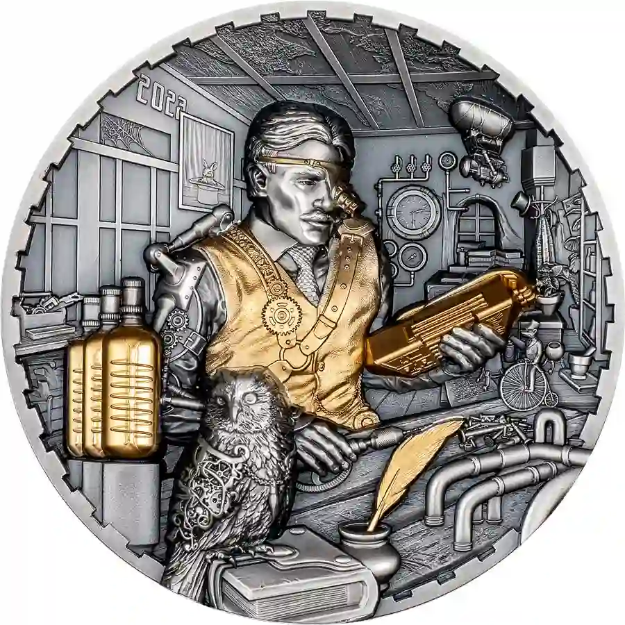 Cookeilanden zilveren munt "Steampunk. Science Lab", 2023, 93,3g, puur zilver (0,999 proof)
