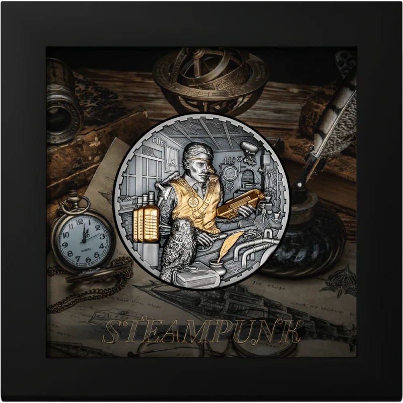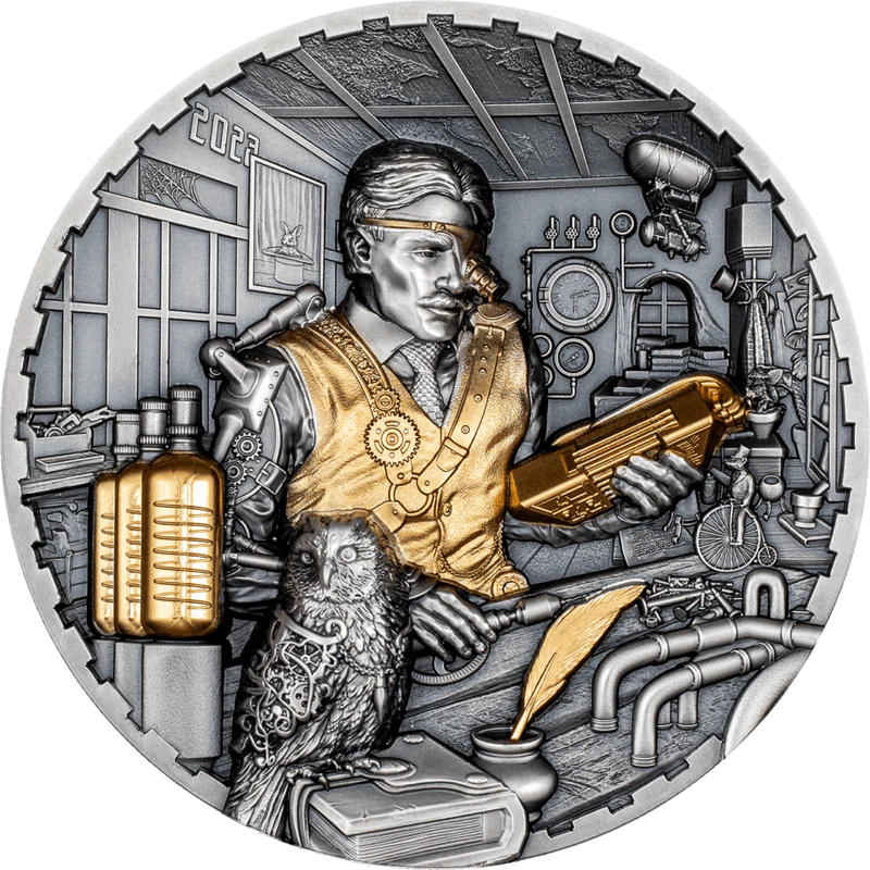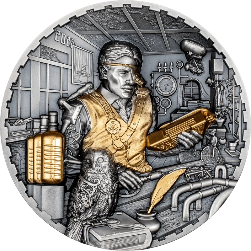 Cookeilanden zilveren munt "Steampunk. Science Laboratory", (ultra, hoog reliëf), 2023, 93.3 gr., puur zilver (0.999 proof)