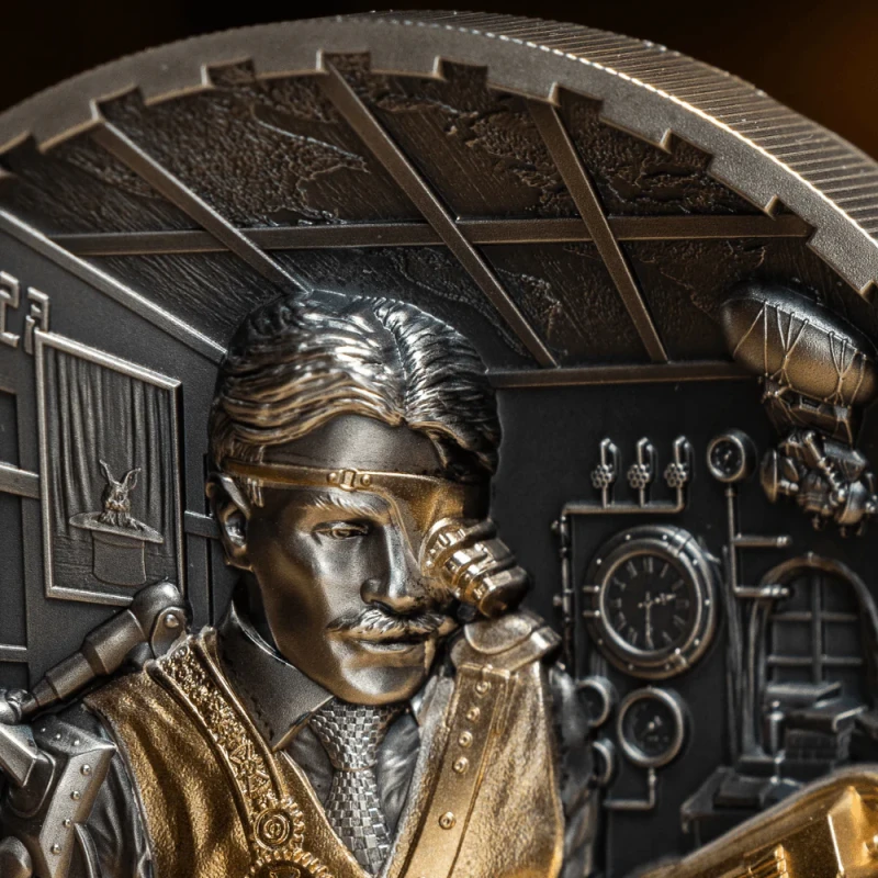 Exclusieve zilveren munt met veel fijne details en zeer hoog reliëf geslagen. Op de munt, in steampunkstijl, staat een veroveraar van de zeebodem afgebeeld, in een gepantserd duikpak, tegen de achtergrond van een vertrekkende onderzeeër en een verscheidenheid aan technogene en mechanische wezens die de zee en de oceaanbodem bewonen.