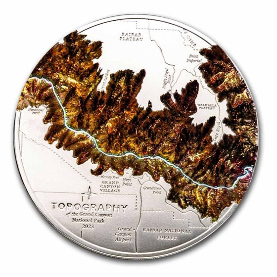 Cookeilanden zilveren munt "Topografie - Grand Canyon", 2023, 155,5g, puur zilver (0,999 proof)