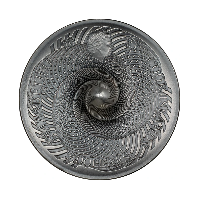 Cookeilanden zilveren spinningmunt (proof) 2023, 31,1 gram puur zilver (0,999 proof)