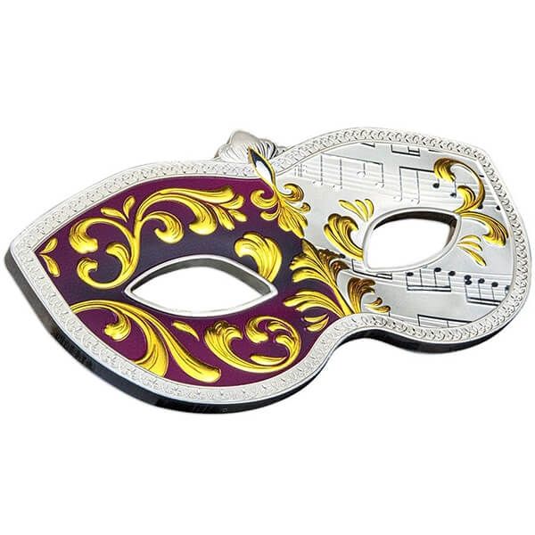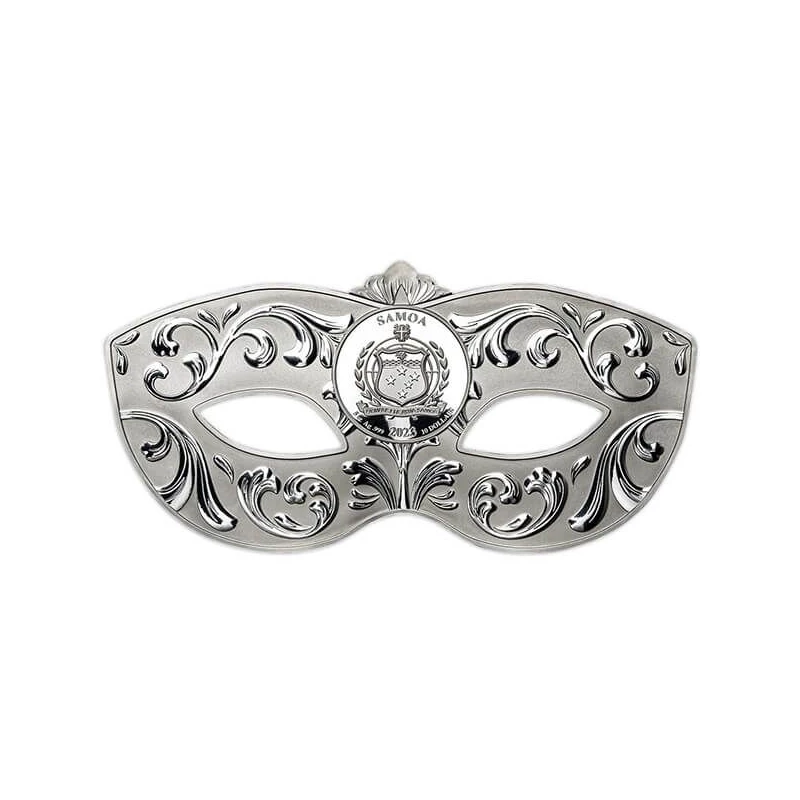 Zilveren munt Samoa "Venetiaans carnavalsmasker", (proof, hoog reliëf) 2023, 155,15 g puur zilver (0,999 proof).