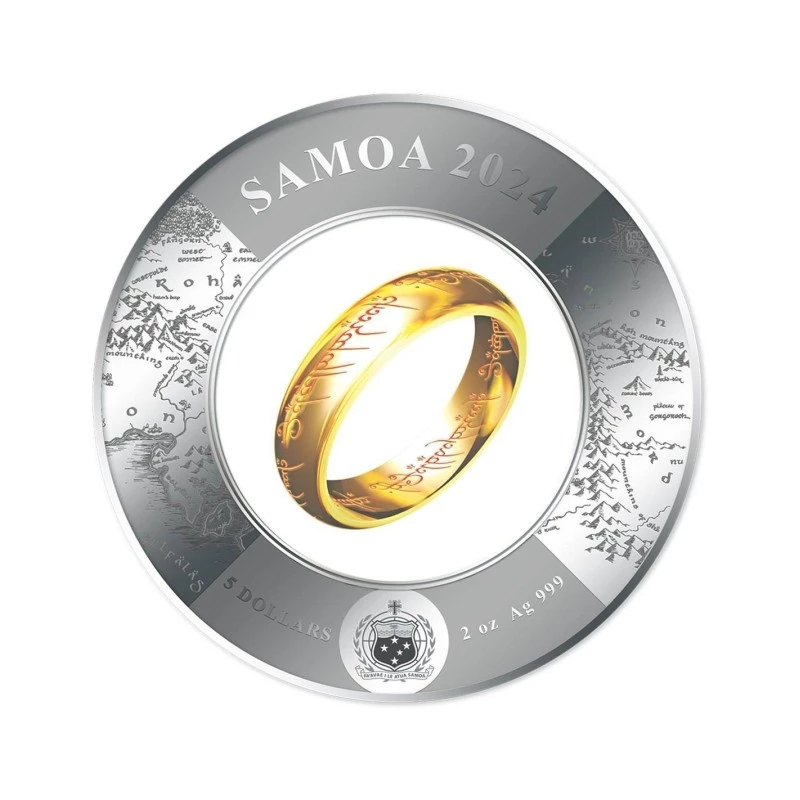 Zilveren munt Samoa "Lord of the Rings", (proof, verguld) 2024, 62,2 g. puur zilver (0,999 proof)