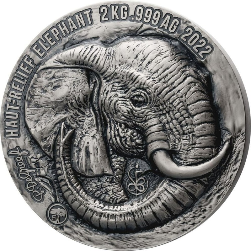 Republiek Ivoorkust: zilveren verzamelmunt Big Five. Olifant 2022, 2000 g puur zilver (0,999)