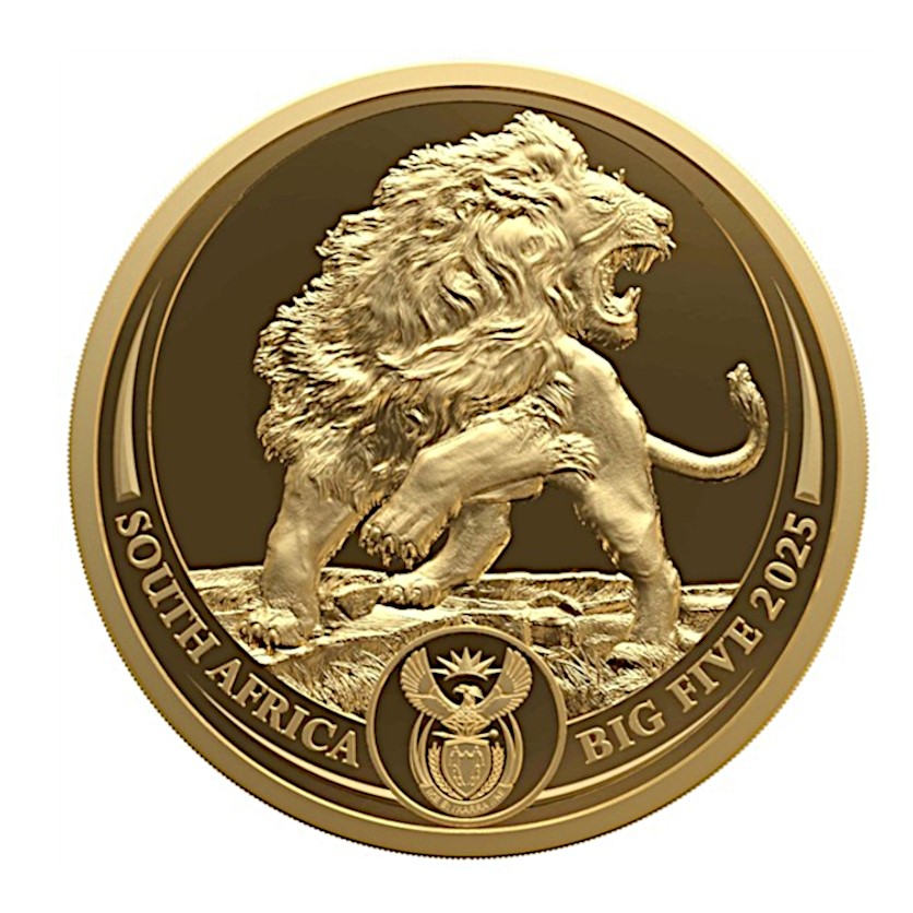 Zuid-Afrika: gouden verzamelmunt Big Five III. Leeuw 2025, gepolijste plaat 7,78 g puur goud (0,9999)