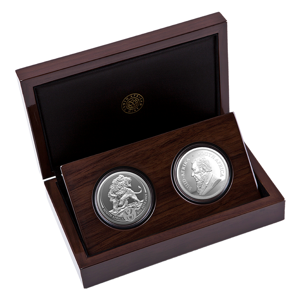 Zuid-Afrika: verzamelmunten Big Five III. Leeuw en Krugerrand 2025 Proof, set 2*31,1 g puur zilver (0,999)