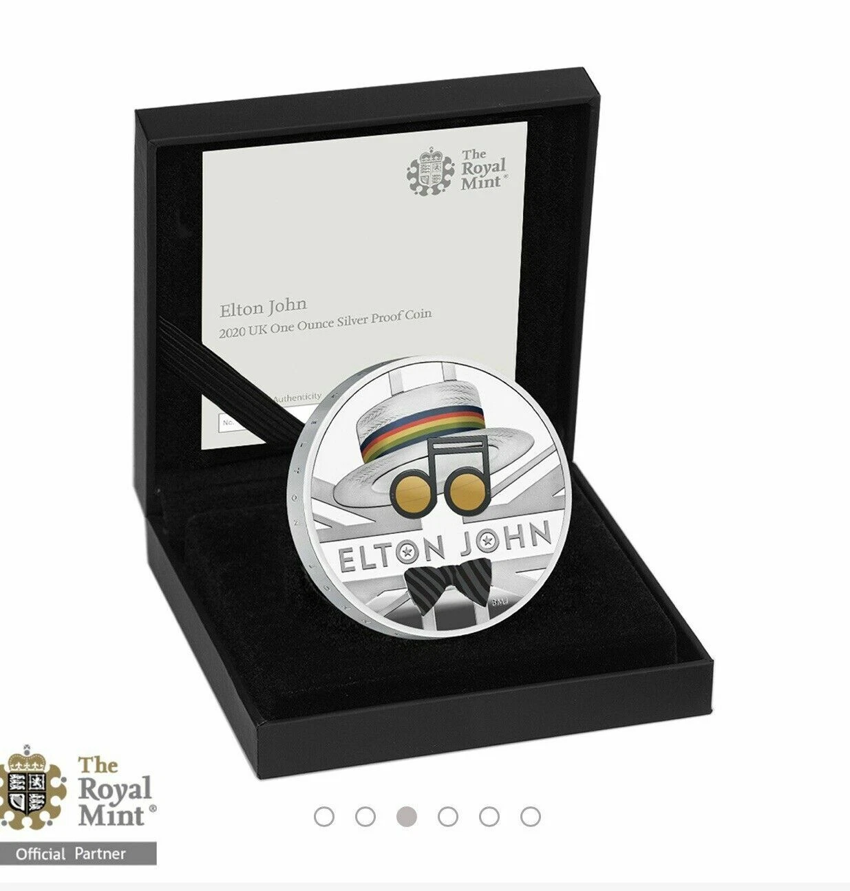 UK: zilveren munt Elton John 2020 Gepolijste plaat gekleurd 1 ounce