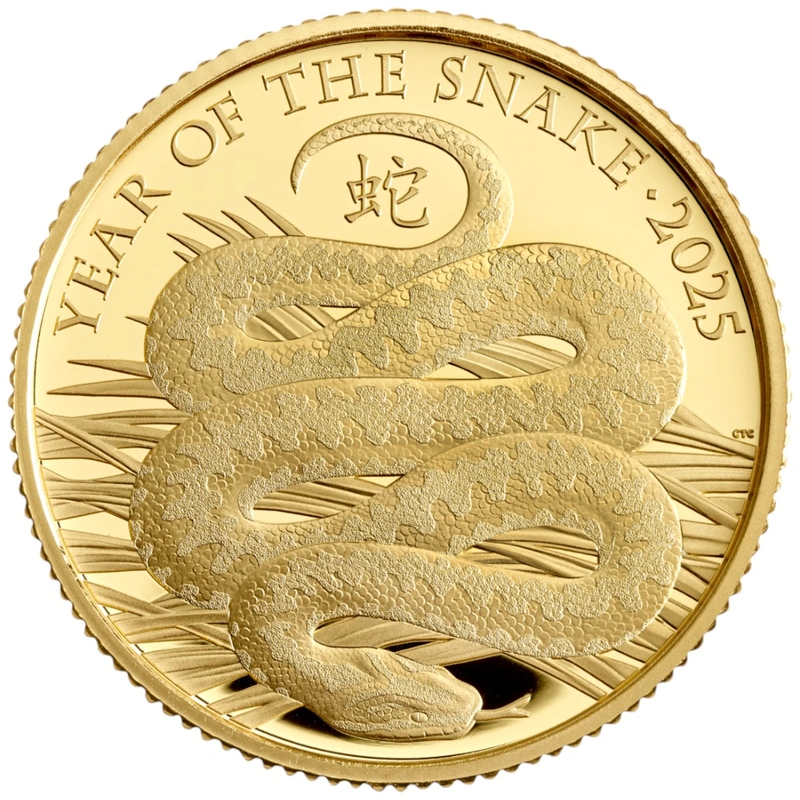 Verenigd Koninkrijk Gouden Verzamelmunt Jaar van de Slang 2025 Proof, 1/4 ounce (7,78 g) van 0,9999 fijn goud.