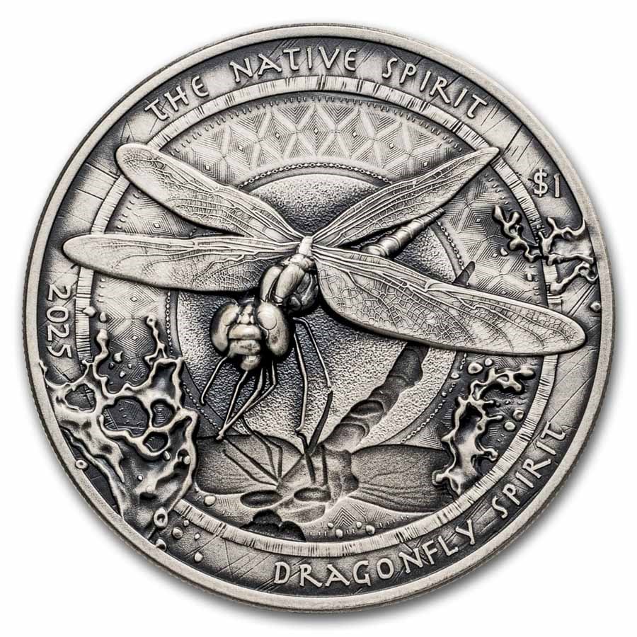 Dynamiek van prijsverandering USA zilveren munt Spirit of Native Peoples Dragonfly Spirit 2025 1 ounce