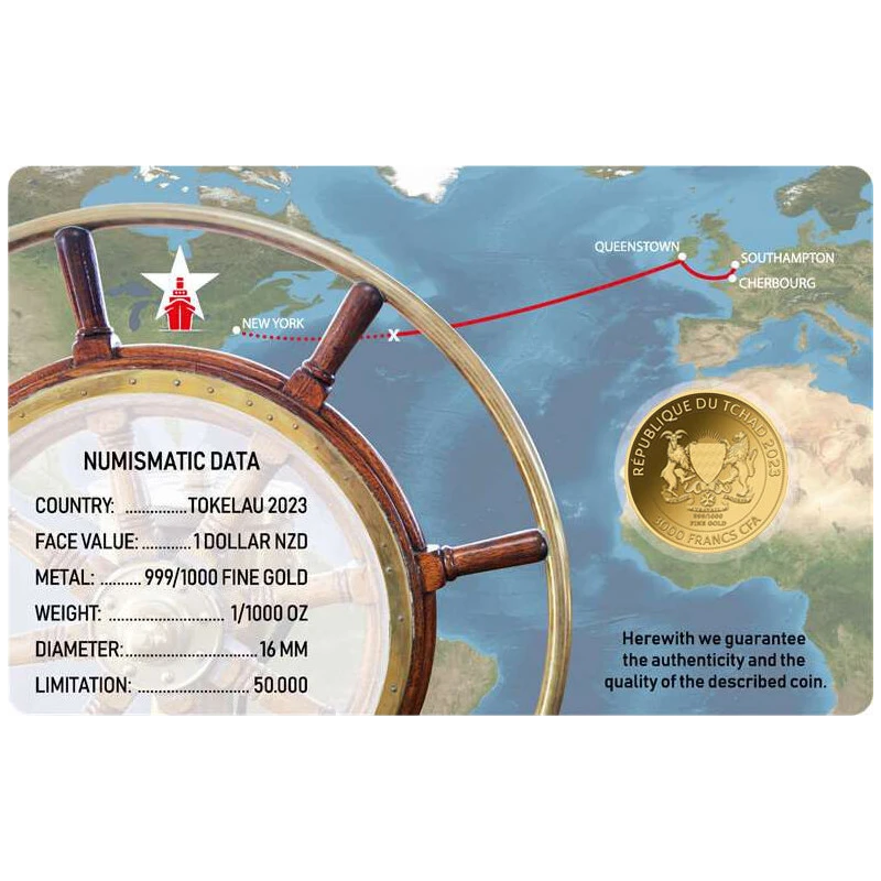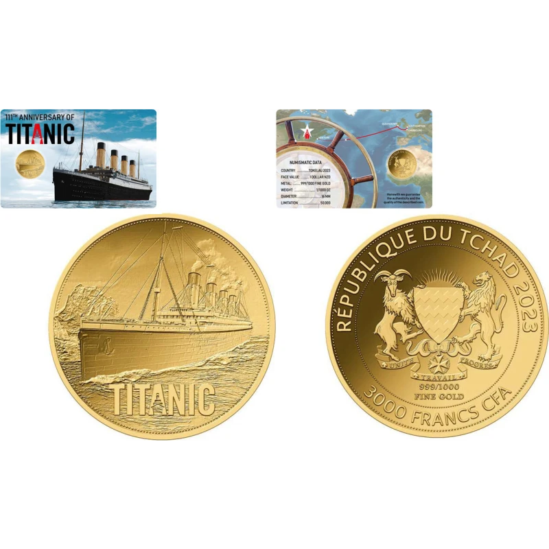 Gouden munt van Tsjaad "Titanic" (proof), 0,031 g. puur goud (0,999 proof)