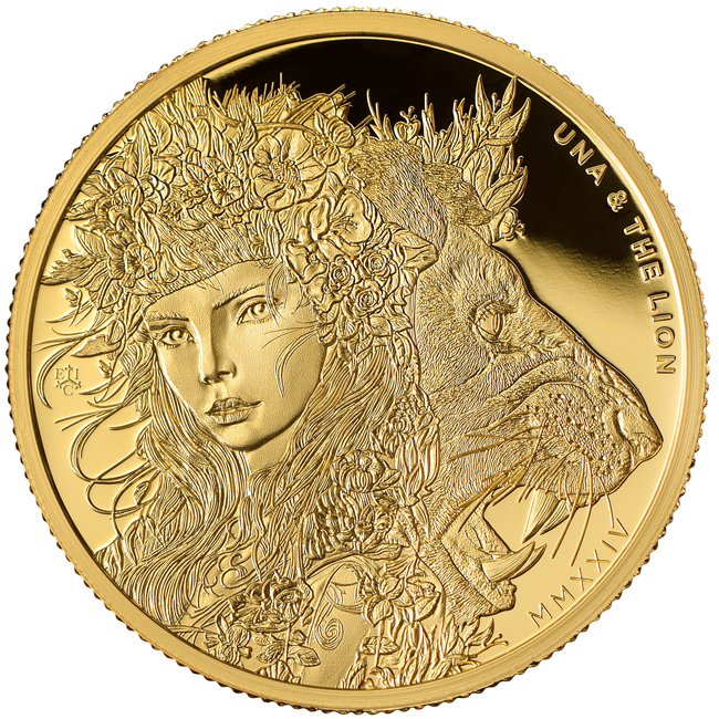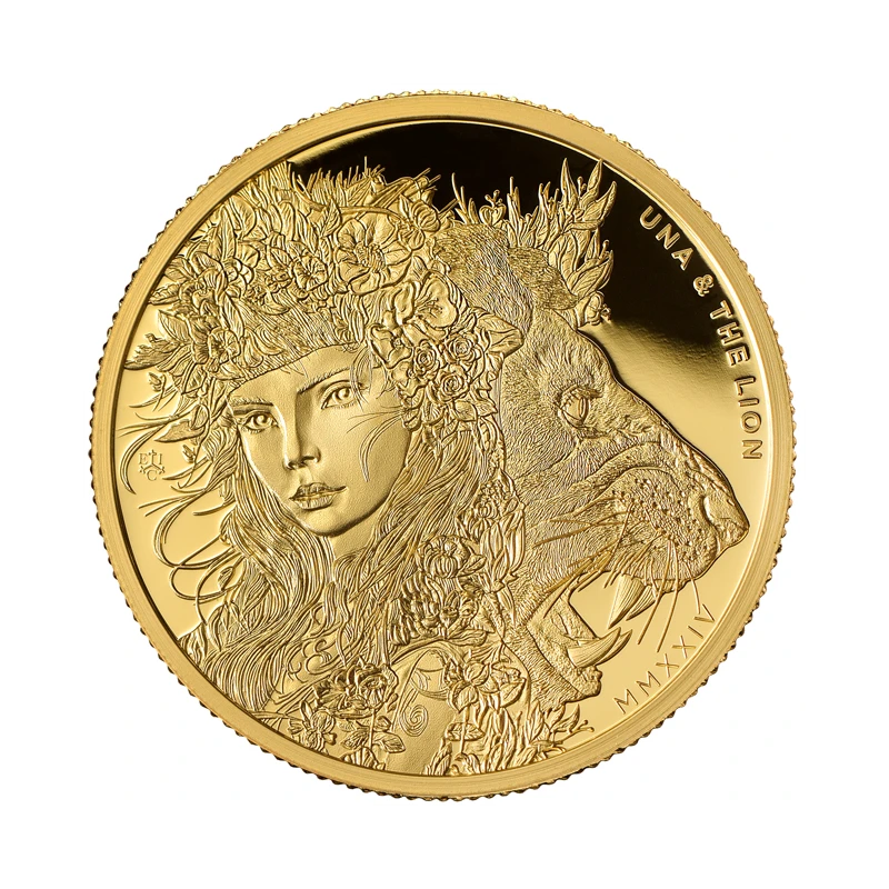 Gouden munt van Sint-Helena "Una en de leeuw" (proof) 2024, 31,1 g puur goud (0,9999 proof).