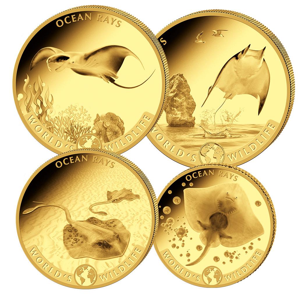 Gouden munt van de Republiek Congo in de set "Wildlife of the World. "pijlstaartrog", 2023, 57,54 g puur goud (0,9999 proof)